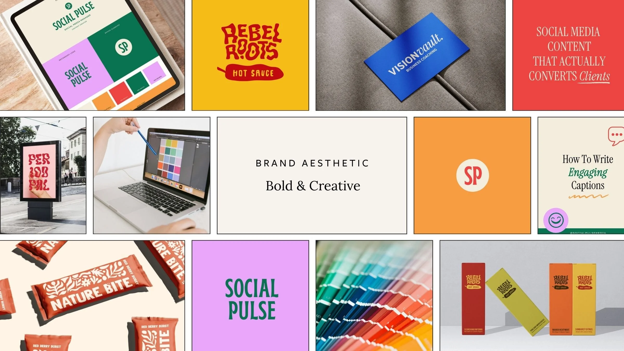Bold creative branding is expressive, confident, and energetic. Think high-contrast color palettes, statement typography, playful layouts, and design choices that feel modern and intentional.