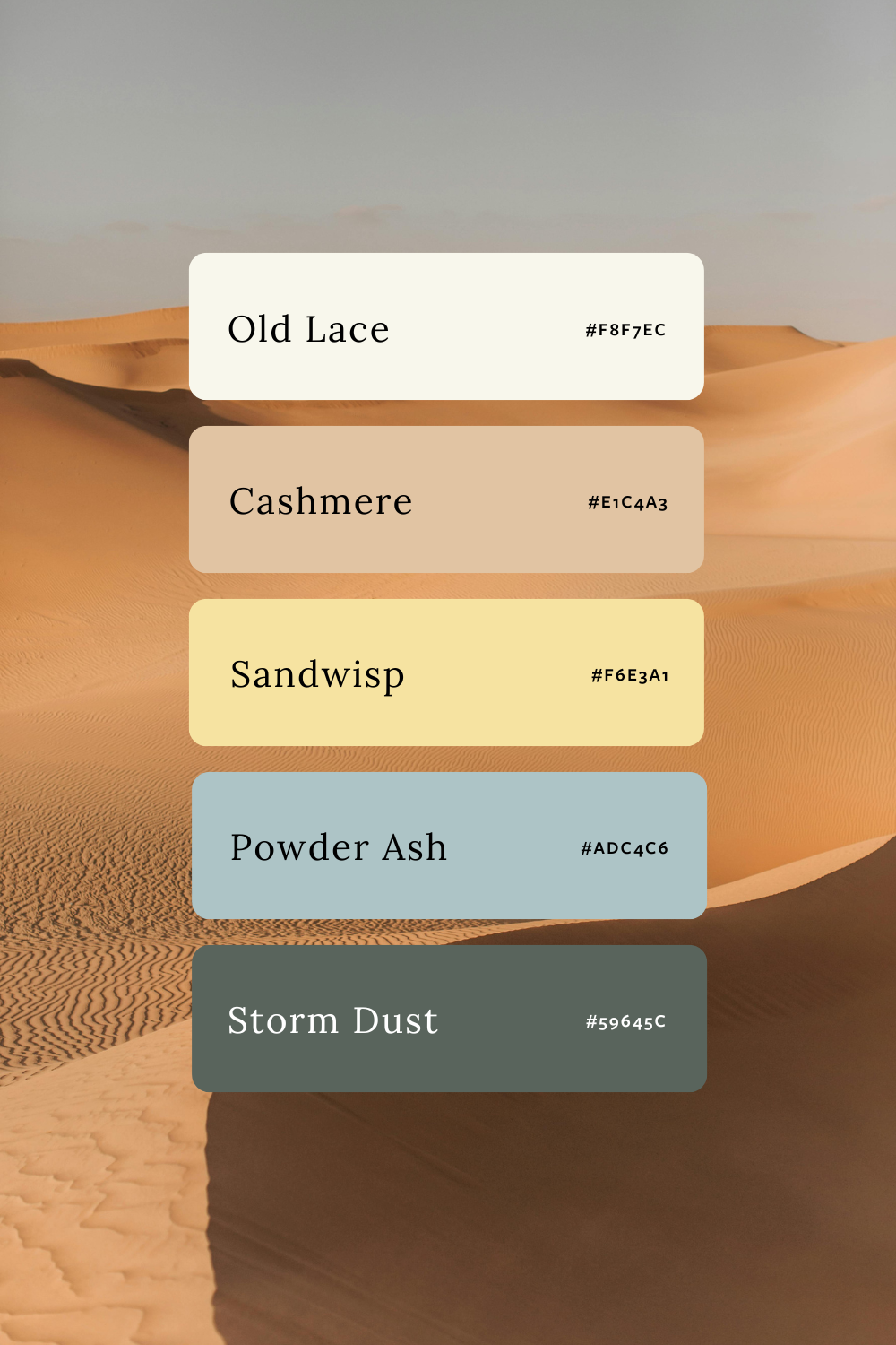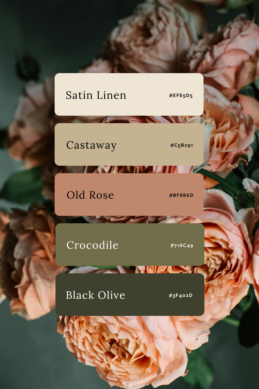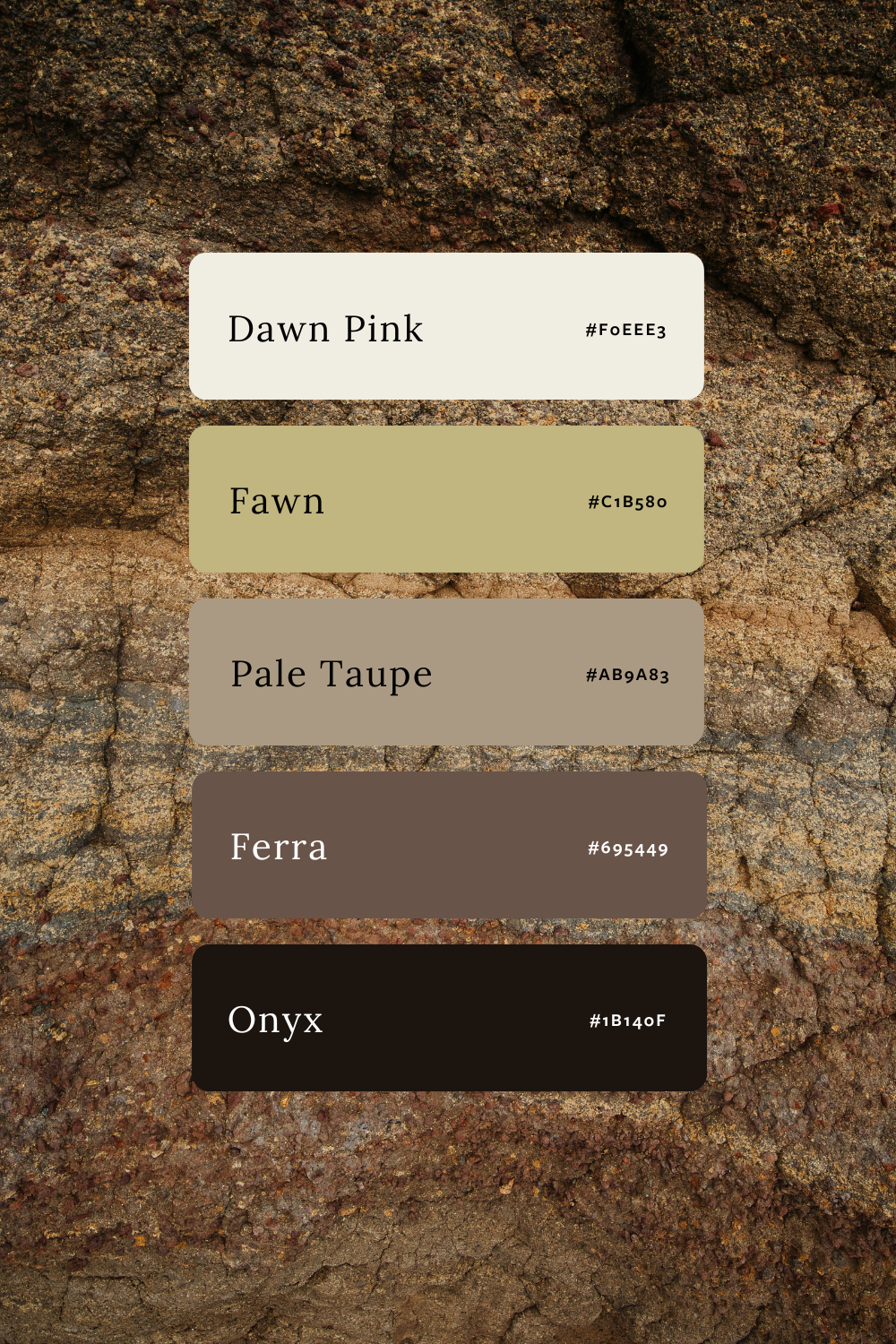 Soul Flow blends gentle neutrals with calming greens and deep grounding tones to create a palette that feels supportive, balanced, and emotionally warm. This palette is ideal if you want your brand to feel calming and natural without losing depth or professionalism.