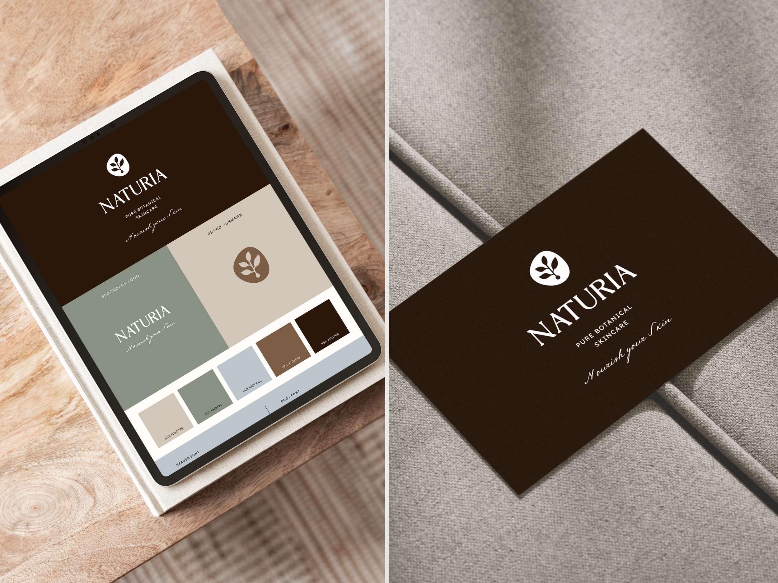 Naturia is a customized color variation of the Wildwood Brand Kit, showing how a shift in color alone can completely change the feel of a brand, while keeping the same structure and typography.