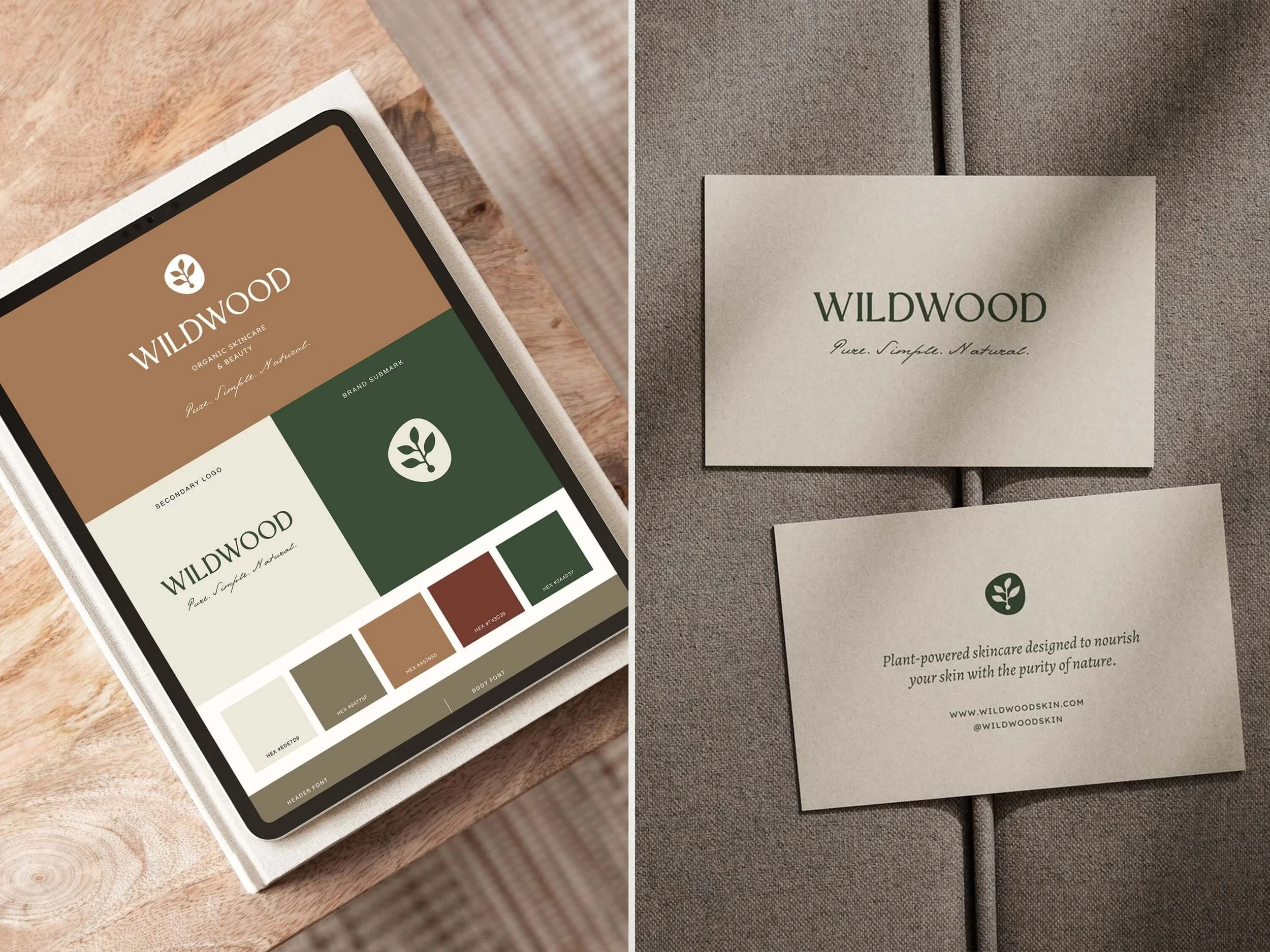 These colors are used in the Wildwood Brand Kit, where the palette supports gentle layouts, organic typography, and a grounded visual flow.