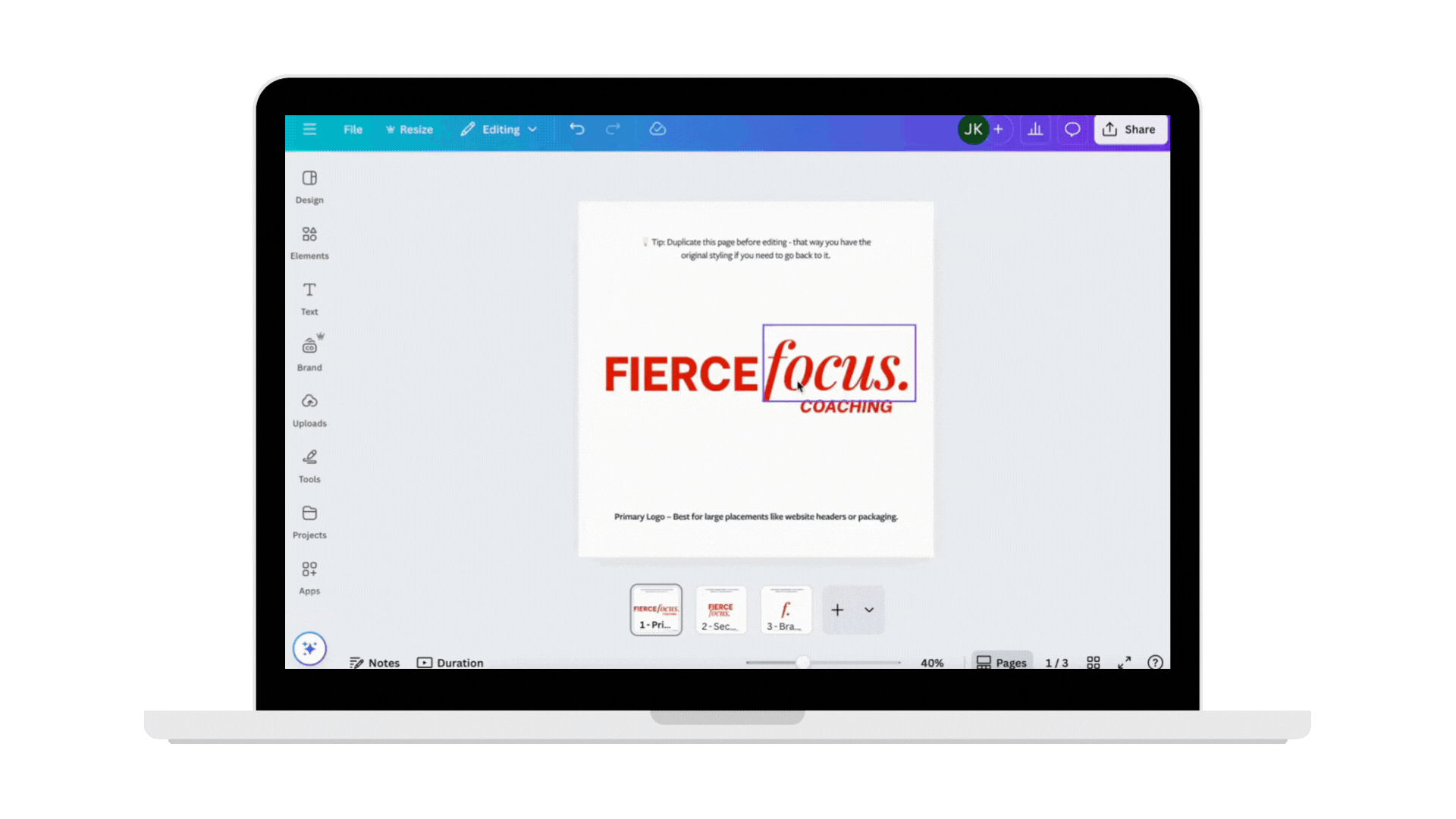 Download your logo files and start using your new brand across your website, social media, packaging and more.