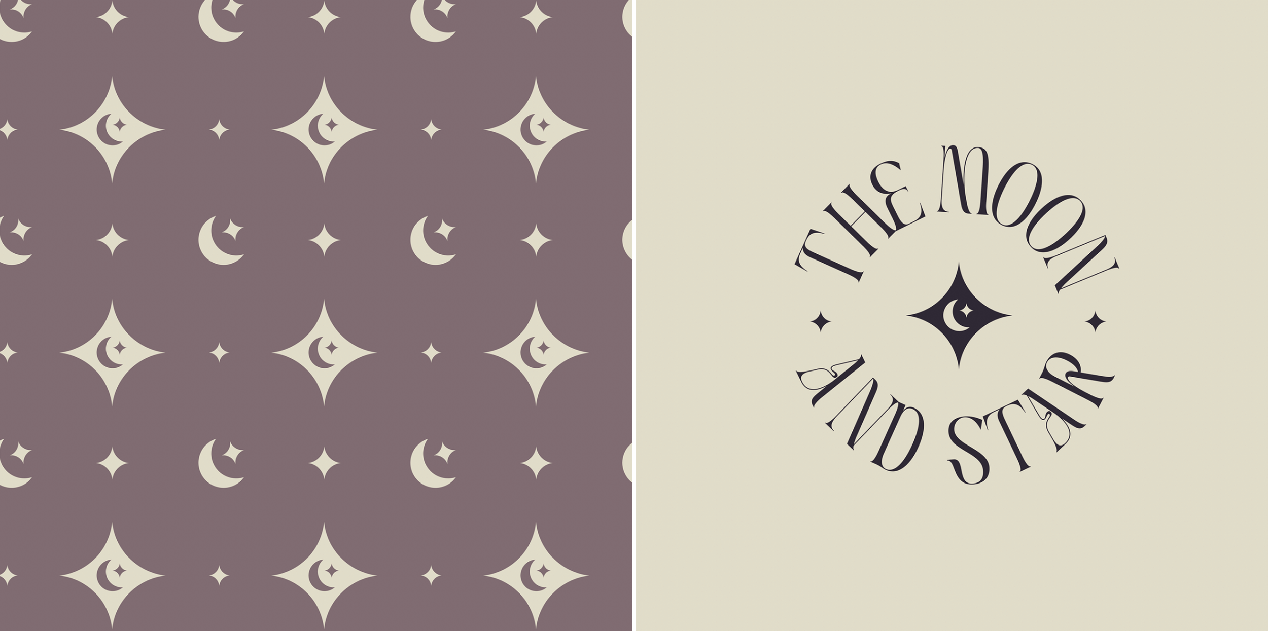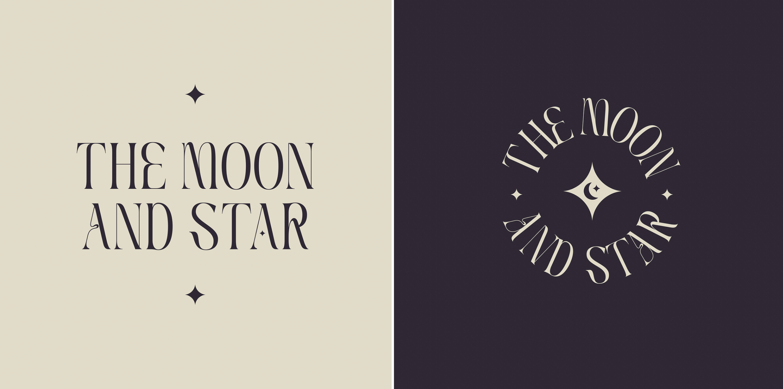 Multiple logo variations were designed to provide flexibility across various touchpoints such as menus, social media, and signage. The primary logo features sophisticated typography paired with a moon and star illustration. A distinct brand submark was also developed, showcasing a larger star encasing the moon and star elements, embodying sophistication and versatility.