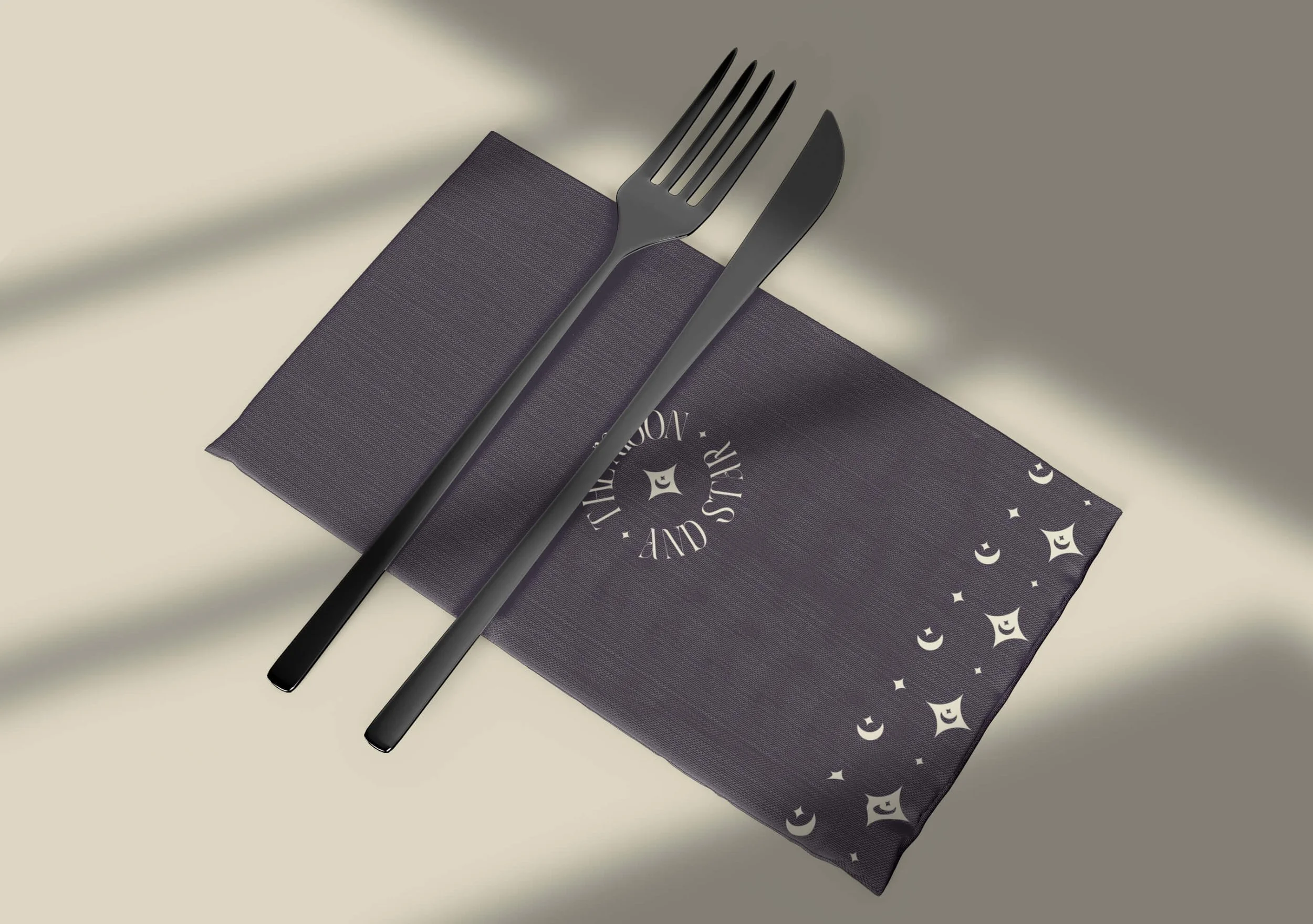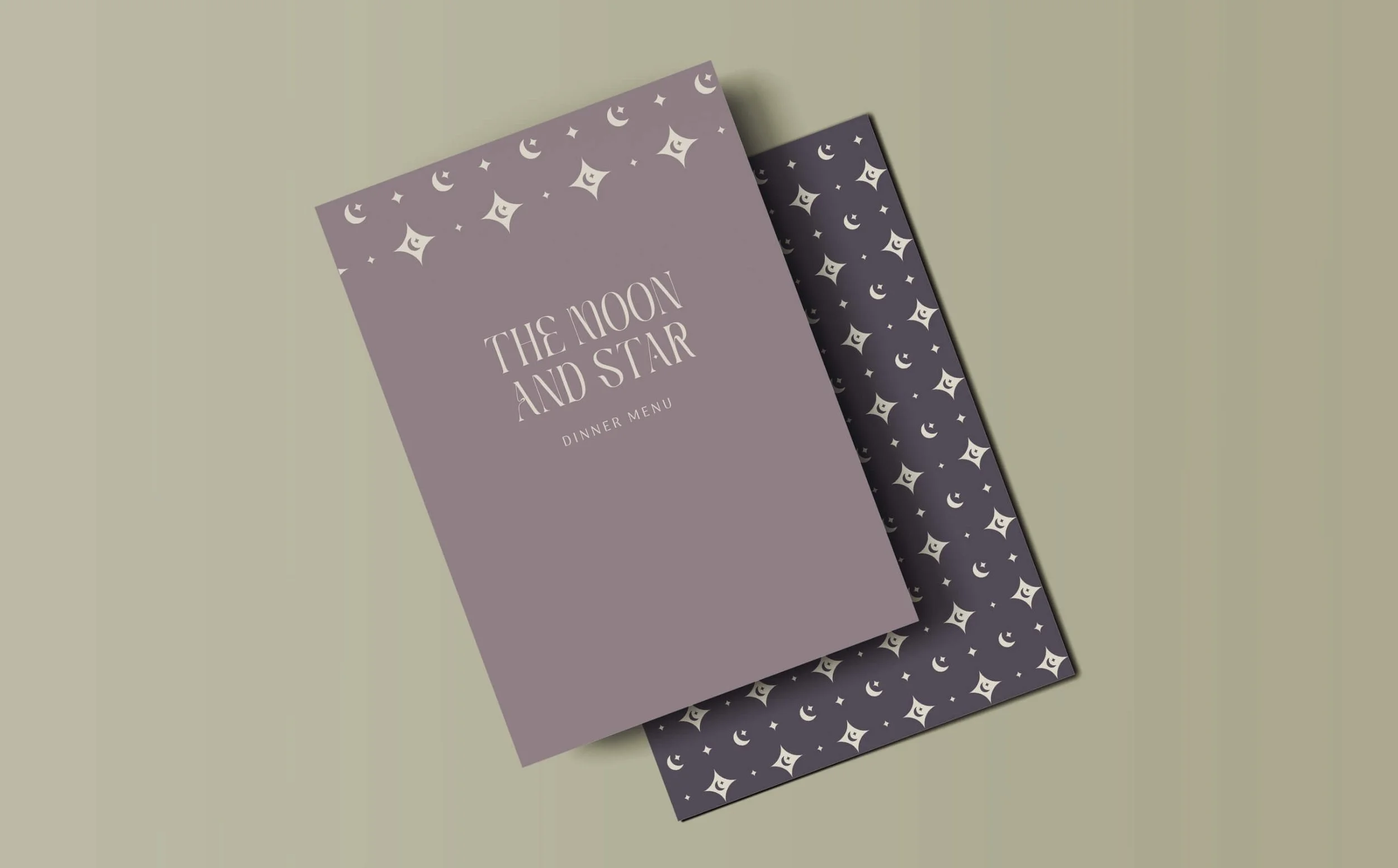 To showcase the brand identity in real-world applications, a range of mockups were created, including: menu designs, branded napkins and gift cards. These elements collectively present a refined and immersive dining experience that aligns with Moon and Star's sustainable and sophisticated ethos.