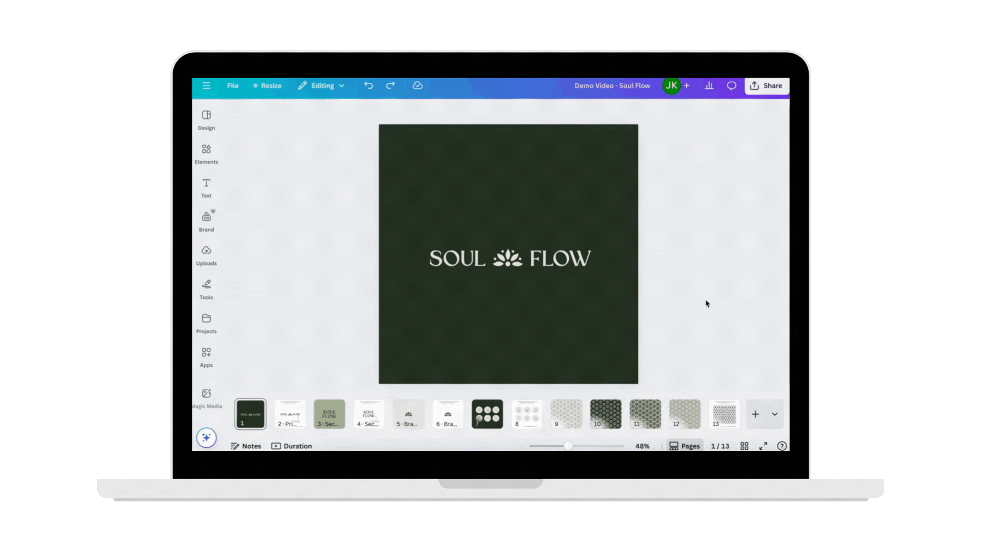 Soul Flow is a calming Canva brand kit that helps you create a grounded, cohesive identity with ease. Perfect for yoga instructors, wellness studios, and pilates professionals, it includes logos, color palettes, icons, a business card, stock images, and Instagram templates - everything you need to launch with confidence.