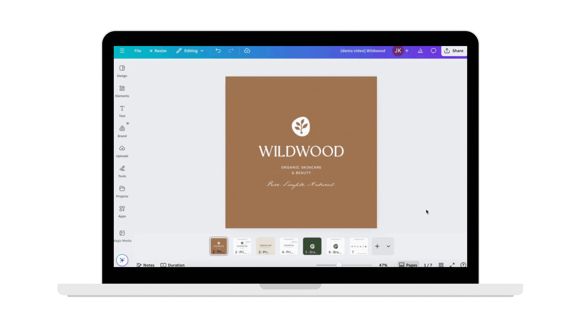 Wildwood is a refined, nature-inspired Canva brand kit designed for organic skincare, wellness, and beauty brands. It includes logos, color palettes, business cards, brand icons, and Instagram templates - everything you need to create a cohesive, elevated presence that feels pure, simple, and naturally luxurious.